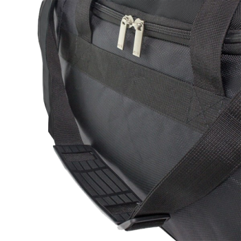 Sac en nylon noir à glissières robustes et avec bandoulière.